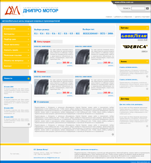 Интернет-магазин по продаже автошин для СП "Днипро Мотор" - Веб ...