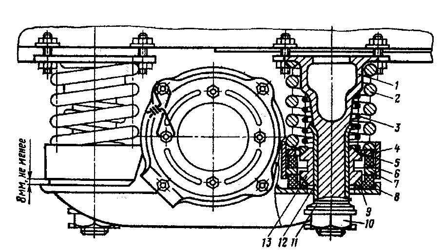 ... пру-жино-резинового амортизатора 10 и стяжной гайки 8. Такая